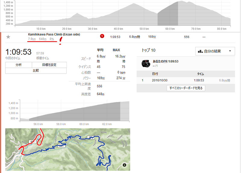 コースプロフィールはご覧のとおり。距離7.9kmにして平均勾配8%! あらやだ、斜度で言ったら、今川峠とほとんど変わらないじゃないですか(;´Д`) これはキツそうな予感・・・