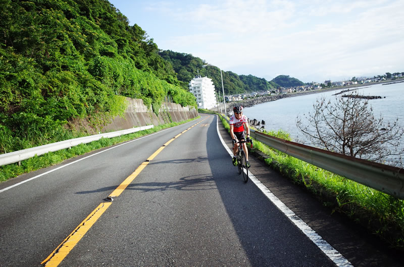 スタートしてすぐに海沿いの国道にイン。信号がほとんどない10kmちょいの道でありまして、ここを軽快にサイクリング・・・な訳はありません(;´Д`)