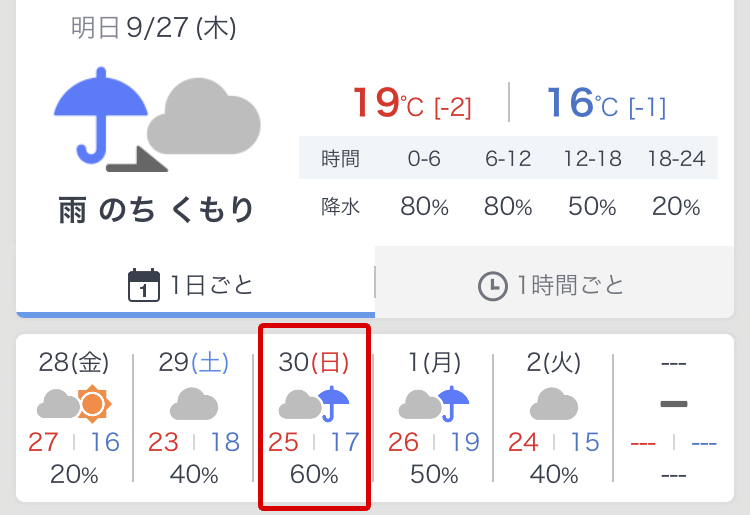 ヤフー天気とてんきとくらすを調べてみたところ!! おぉぉ、どっちも雨予報_(:3」∠)_