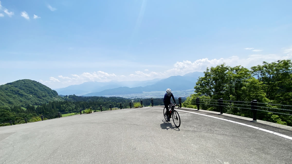 デゲメン氏の賛同を得たところで、再び魚沼スカイラインの尾根まで上り返すことにしました。八箇峠から一気にダウンヒルで南魚沼市の高速道路付近まで下り、県道82号線から魚沼スカイラインへ。