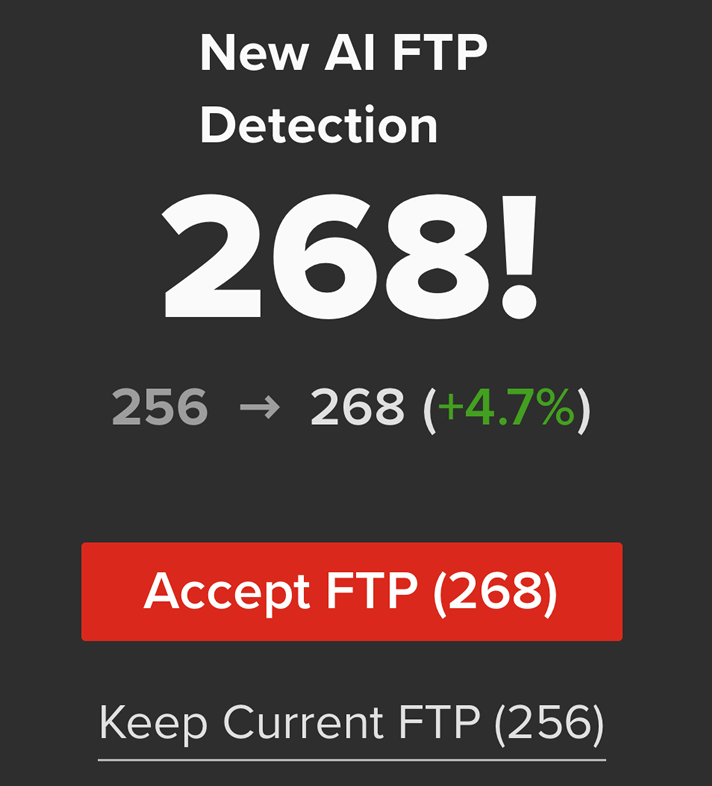 新しく検知されたFTPは、ほげげげ、268W! 一気に4.7%上昇ってどういうこと(◎_◎;)!?